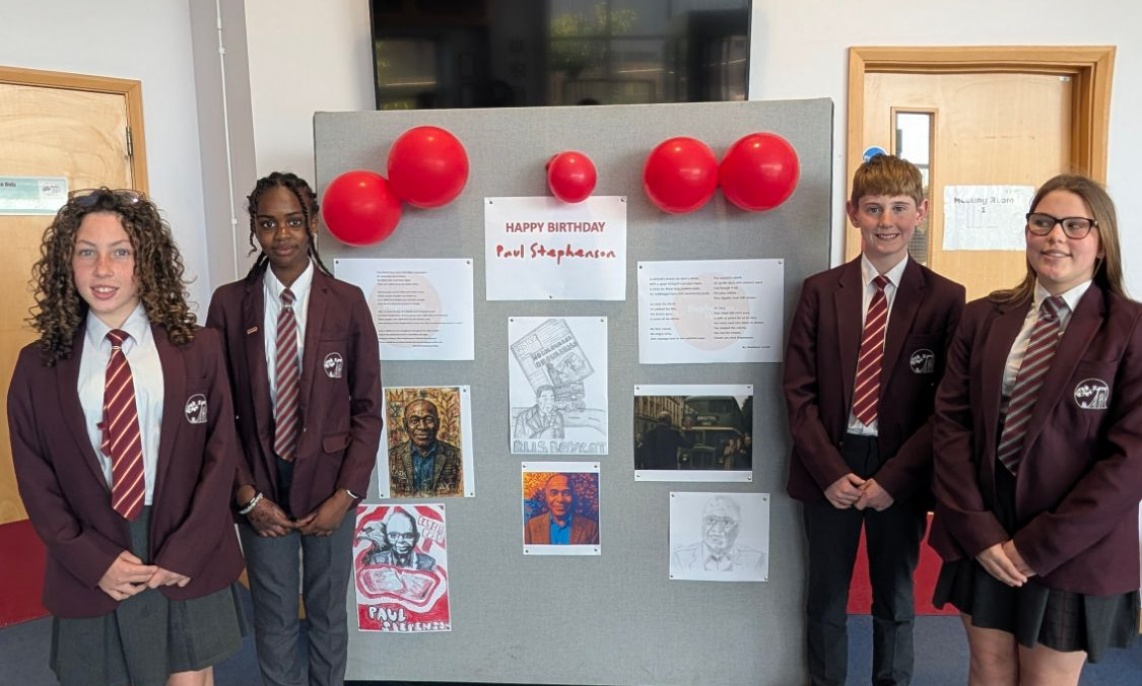 On 6th May we celebrated what would have been Paul Stephenson's 88th birthday. The top gate was decorated with balloons, a birthday banner and the Stephenson flag. Members of Stephenson House produced art work and writing for a "Stephenson Showcase" on display in reception. Well done to Cienna, Jarra, Vincent and Maddison who were among the contributors.